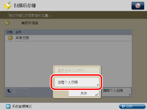 (设置/注册)→[功能设置]→[存储/存取文件]→[高级存储箱设置]→[允许创建个人空间]。