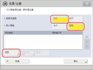 按<使用筛选器>的[打开]→按<默认策略>的[拒绝]→按[注册]。