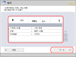 如果在“自定义菜单”中注册常用功能设置(如“复印”、“扫描后发送”和“扫描后存储”),也可以在其他机器上使用这些设置。