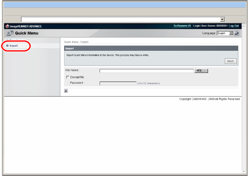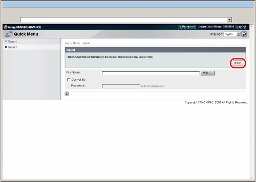 单击[Import](导入)可以显示“Import”(导入)页面。