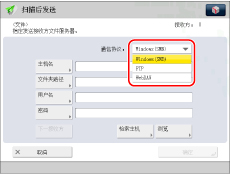 如果选择[Windows(SMB)]作为服务器协议,可以通过按[检索主机]指定“高级存储箱”。有关使用[检索主机]的说明,请参阅“使用检索主机键指定文件服务器(Windows(SMB))”。