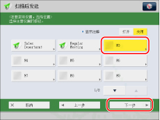 如果为“设置/注册”的[功能设置]中的[用于文件发送/浏览认证的信息]选择[设备登录认证信息],文件接收方的密码不会存入常用设置按钮中。有关[用于文件发送/浏览认证的信息]设置的详细信息,请参阅“指定文件服务器的认证方法”。