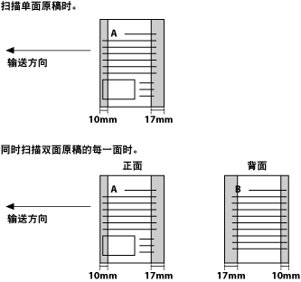 如果原稿放入输稿器中时只有以下图示所示的区域存在彩色部分