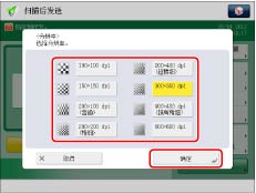 如果仅指定互联网传真地址作为接收方,则可以将分辨率设置为200×400 dpi、400×400 dpi或600×600 dpi。无论色彩模式设置如何,始终以“黑白二值”模式发送互联网传真原稿。