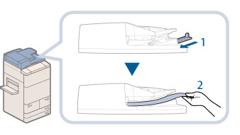 如果要从输稿器扫描长条形原稿,不应拉出“辅助原稿输出托盘”,以防止已扫描的原稿起皱。在这种情况下,用手托住输出的原稿。