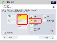 如果为PDF或XPS文件格式选择[压缩],则色彩模式分别从[自动(彩色/黑白)]和[黑白二值]转换为[自动(彩色/灰度)]和[灰度]。如果要以指定的色彩模式扫描文档,将PDF文件格式更改为除[压缩]和[轮廓]以外的其他格式,将XPS文件格式更改为除[压缩]以外的其他格式。