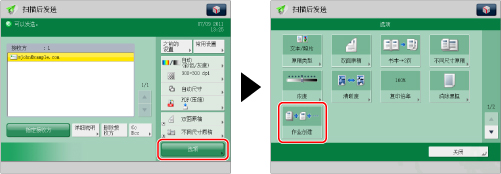 一次最多可以发送999页。使用[作业创建]时,如果已扫描999页原稿,则会出现一条信息询问是否发送作业。如果选择发送作业,则发送扫描的999页。如果取消作业,则不会发送已扫描的页。