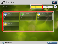 如果在“自定义菜单”中注册时将恢复设置的<恢复时显示确认屏幕>设置为“关闭”,则在处理按钮中注册的设置之前不会显示确认对话框。(请参阅“注册个人按钮/共享按钮”)