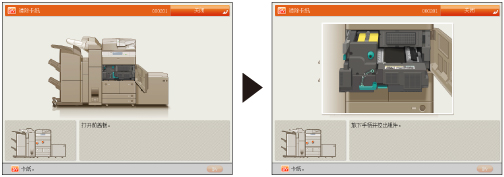 如果在多个位置发生卡纸,按照触摸面板显示屏幕所示的顺序清除卡纸。