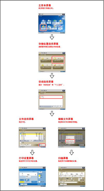 有关[添加文件(扫描后存储)]的步骤和在“扫描”屏幕上的操作说明,请参阅“添加文件(扫描后存储)”和“扫描后存储操作的流程”。