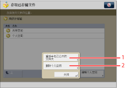按下可以显示用于编辑存储空间中的文件夹的菜单。