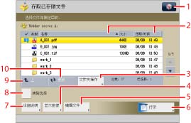有关[添加文件(扫描后存储)]的步骤和在“扫描”屏幕上的操作说明,请参阅“添加文件(扫描后存储)”和“扫描后存储操作的流程”。