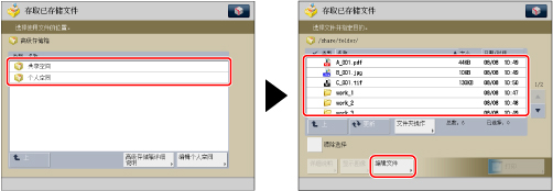 按[存取已存储文件]→[高级存储箱]。