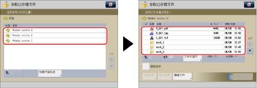可以查看网络上其他机器“高级存储箱”中存储的文件的详细信息(文件夹名称、位置、修改日期等)。