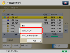 如果选择多个文件并按[更改文件名称],则选定(加亮)文件成为要更改其标题的文件。