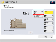 如果预先将信息存储到本机中,则添加到每个纸盒中的纸张类型的图标就可以显示在纸张选择屏幕上。(请参阅“注册/编辑自定义纸张类型”)