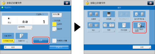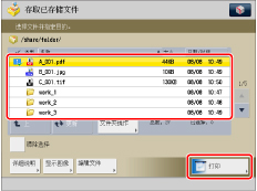 该模式只能用于打印存储在“高级存储箱”、网络上其他imageRUNNER ADVANCE机器的“高级存储箱”或存储介质中的文件。