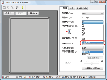 如果要扫描非标准纸张尺寸的原稿,则不能选择[不同尺寸]。 如果要扫描非标准纸张尺寸的原稿,为[原稿尺寸]选择[任意尺寸]或[自定义]。 只能同时扫描长宽相同的原稿。