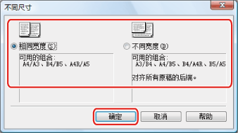 对于A3和A4这样的尺寸,较小原稿的长边和较大原稿的短边尺寸相同,请选择[相同宽度]。