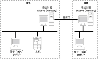 Active Directory Authentication是一种用户认证方法,即登录到本机,然后通过与Active Directory的域控制器连接对网络中的域执行认证。除属于本机所在域的用户外,最多可以对属于与本机所在域直接关联的域的200名用户执行认证。用户登录时选择域名。