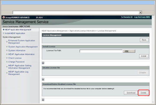如果要卸载应用程序,必须首先删除许可协议文件。另外,如果在删除前要进行备份,在计算机上下载并存储许可协议文件。