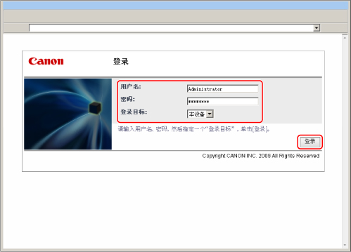 如果作为Local Device Authentication的管理员登录,且用户名和密码仍是默认设置时,单击[登录]时会显示更改密码的屏幕。更改密码以增加安全性。