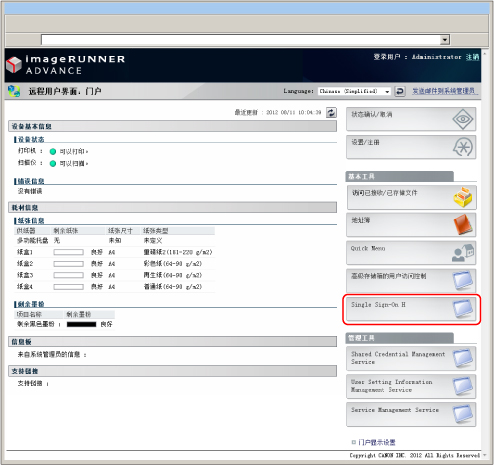 如果以“系统管理员”(Administrator)身份登录,确保在关闭SSO-H之前先进行注销。如果未注销就关闭网络浏览器,即使再次以“系统管理员”(Administrator)身份登录,在一段时间内也无法使用SSO-H。