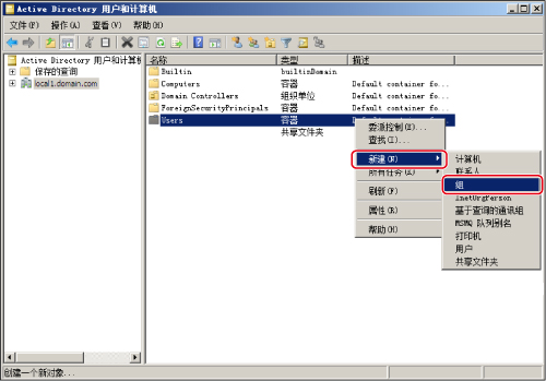 将已注册的Active Directory用户添加到“Canon Peripheral Admins”组或任意一个Active Directory管理员组,以使该用户成为Server Authentication管理员。按照以下步骤添加“Canon Peripheral Admins”组。