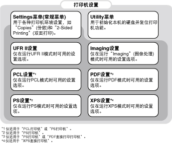 可以指定许多影响本机打印机功能的设置。其中一些设置无法从应用程序或打印机驱动程序远程指定。这些设置被称为“菜单功能”。