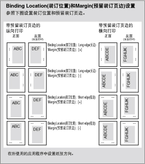 对于双面打印,“Binding Location”(装订位置)模式可能会更改纸张反面图像的方向。