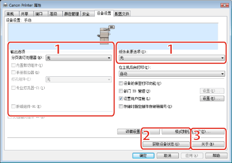 可以设置设备上所安装的打印机选项(例如进纸选项,出纸选项等)。