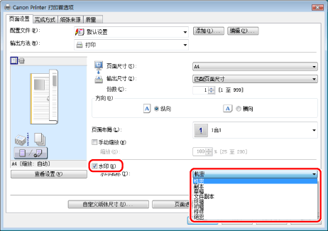 可以在使用应用程序创建的文档上打印水印(如“机密”或“副本”)。除预定义的水印外,也可以注册自定义水印。