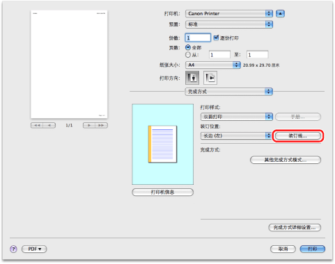 [打印样式]的默认设置为[双面打印]。可以将单面打印保存为预设值。有关详细信息,请参阅“
