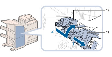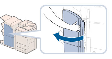必要时,在更换鞍式装订处理器中的装订针盒前,取出“书本托盘”中的所有输出纸张。
