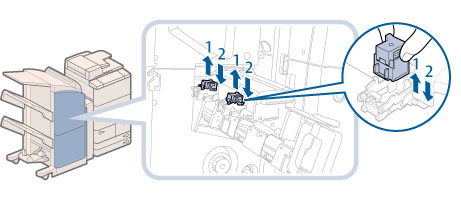 更换装订针箱时,请同时更换前后装订针箱。