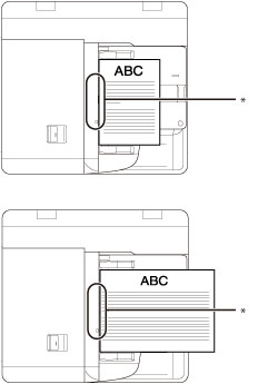 如下所示,在输出鞍式装订打印件前,请确保将“书本托盘”导板调整为与输出纸张尺寸相符。