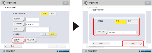 按[设置SMB打印机]→指定SMB打印机设置→按[确定]。