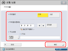 如果将<WINS解析> 设置为“打开”并在[SMB服务器设置]中同时设置了[服务器名]和[工作组名称],即使将<使用SMB服务器>设置为“关闭”,仍会启用WINS名称注册功能。