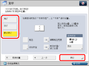 只有设置了“双面复印”时,才可以设置[鞍式装订]模式。