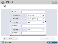 从<加密算法>下拉列表中选择[DES]或[AES]→设置[加密密码]。