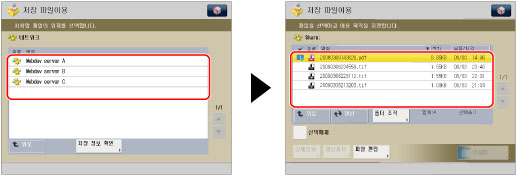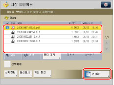 폴더에 두 개 이상의 문서가 저장된 경우 [명칭]이나 [날짜/시각]을 눌러 파일 리스트를 정렬할 수 있습니다.