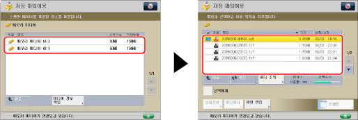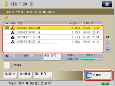 메모리 미디어에 두 개 이상의 문서가 저장된 경우 [명칭]이나 [날짜/시각]을 눌러 파일 리스트를 정렬할 수 있습니다.