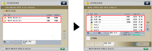 원고를 메모리 미디어로 스캔하려면 [스캔/인쇄기능 사용]에서 <스캔기능 사용>을 '설정'으로 설정해야 합니다. ("메모리 미디어 설정" 참고)