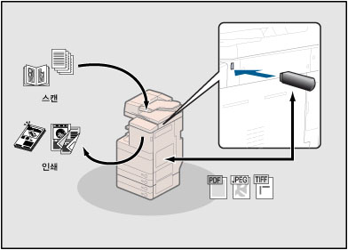 USB 허브를 통한 메모리 미디어 연결