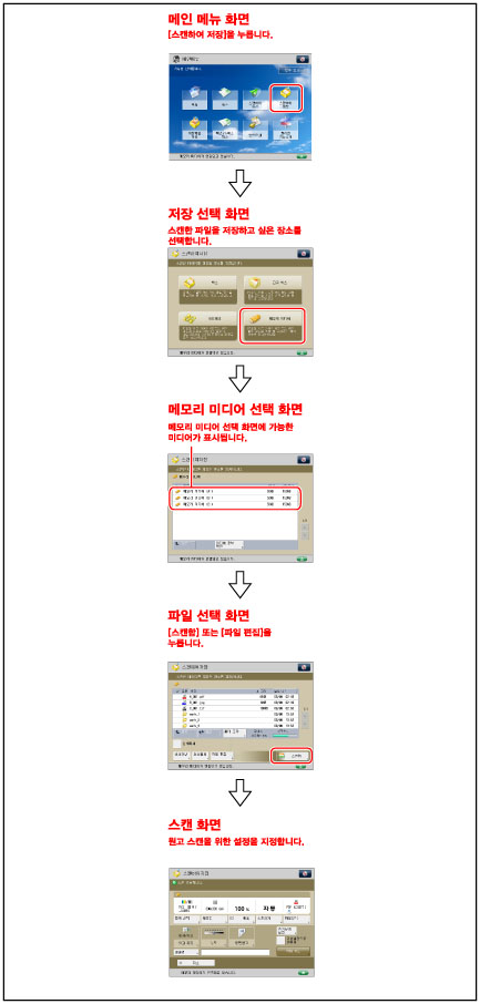 원고는 메모리 미디어에서 스캔 및 저장됩니다. |