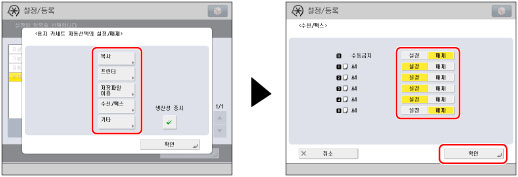 [복사]를 선택하면 용지 종류를 고려할지 여부를 설정할 수 있습니다.