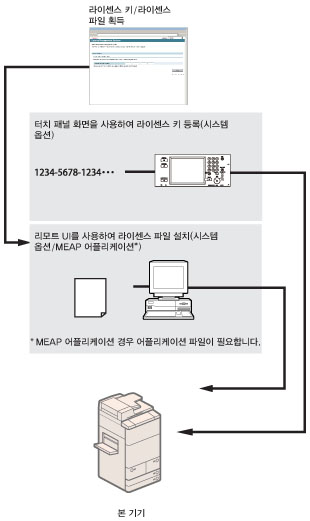 시스템 옵션/MEAP 어플리케이션에 따라 라이센스 등록이 필요할 수 있습니다.