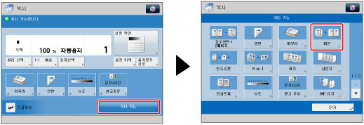 소책자 피니셔-P1을 장착한 경우에만 중철 모드 및 분할 제본 모드를 설정할 수 있습니다.