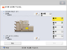 인쇄 중에 용지를 넣으라는 메시지가 나타나는 경우, 적절한 용지를 넣은 후에 잔여 인쇄가 자동으로 수행됩니다. 다른 급지 위치를 선택한 경우 [확인]을 누르면 나머지가 인쇄됩니다.