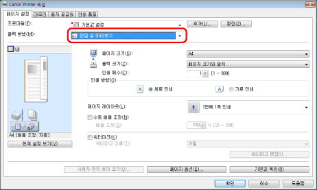 화면은 운영 체제와 프린터 드라이버의 종류 및 버전에 따라 다를 수 있습니다.